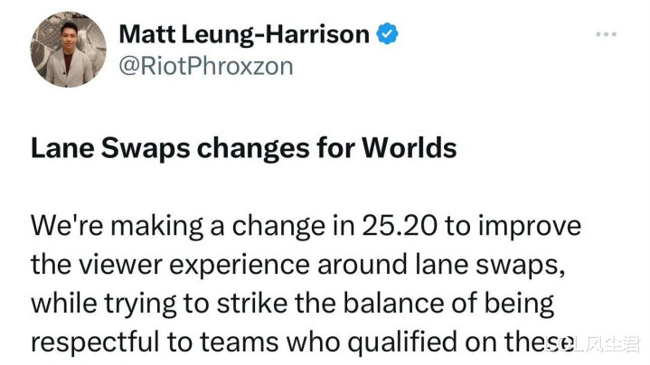 拳头设计师发文:为了提升观众在观看换线时的体验,同时平衡靠换线策略,拿到世界名额的队伍,拳头决定将上路换线惩罚时间,调整到4分钟,比先锋赛的时候多了30秒(比现版本多了1分30秒),设计师在文中表示:知道大家都想看顶级上单1v1,而不是顶级AD,靠着手长欺负上单。