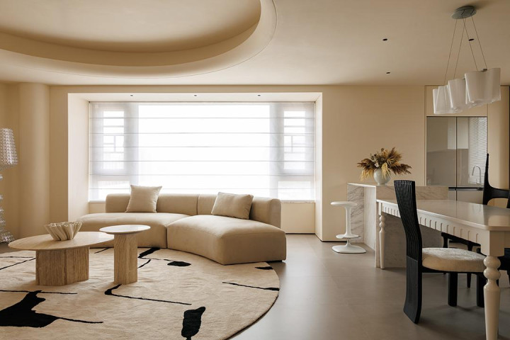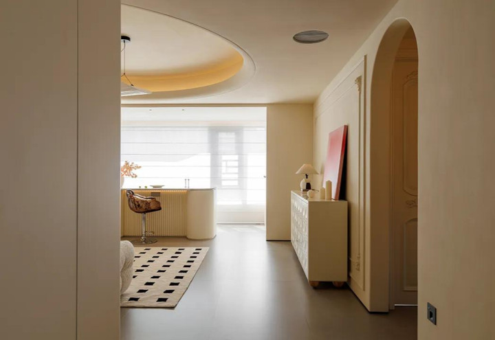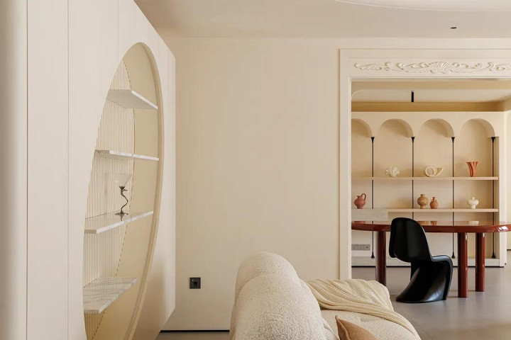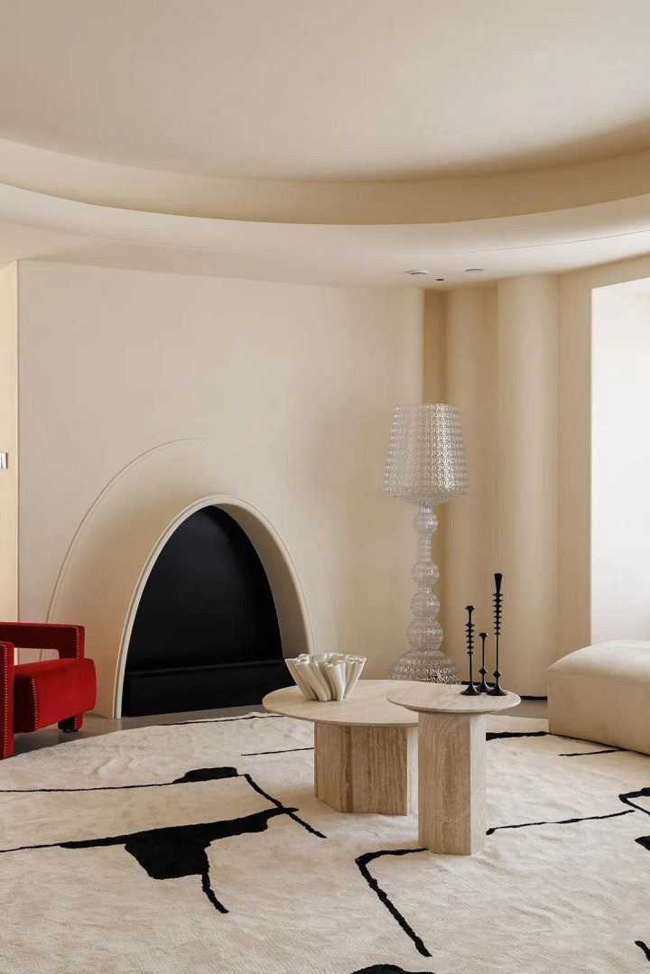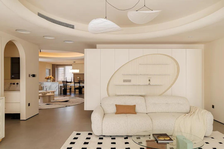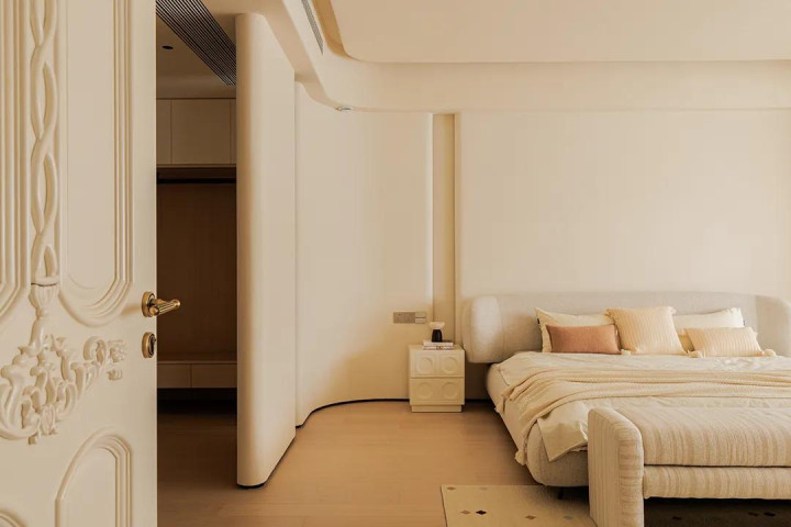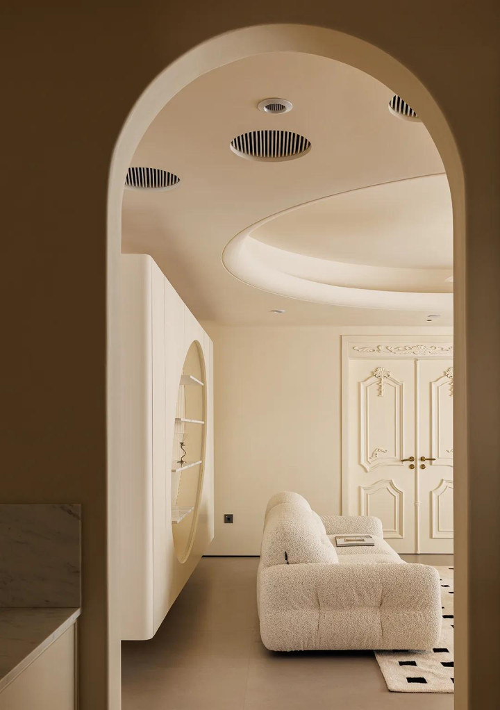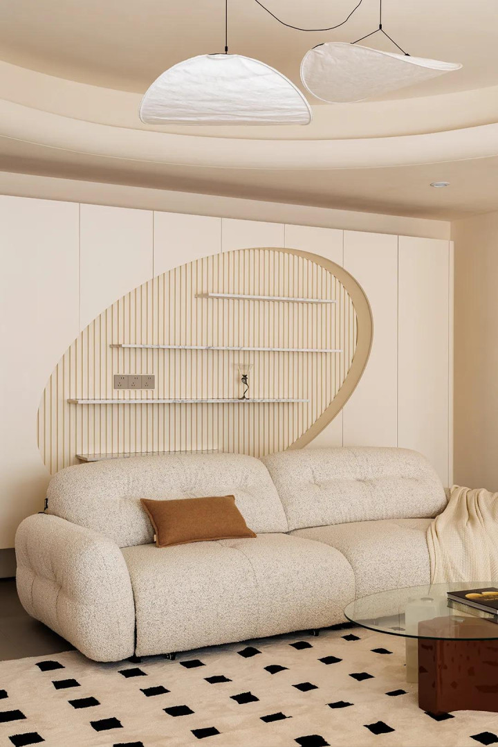 空间摒弃锐利的直角,让温润的弧线从墙角漫延至天花,如同缓缓展开的羊皮卷轴,记录着关于柔软生活的诗意宣言。