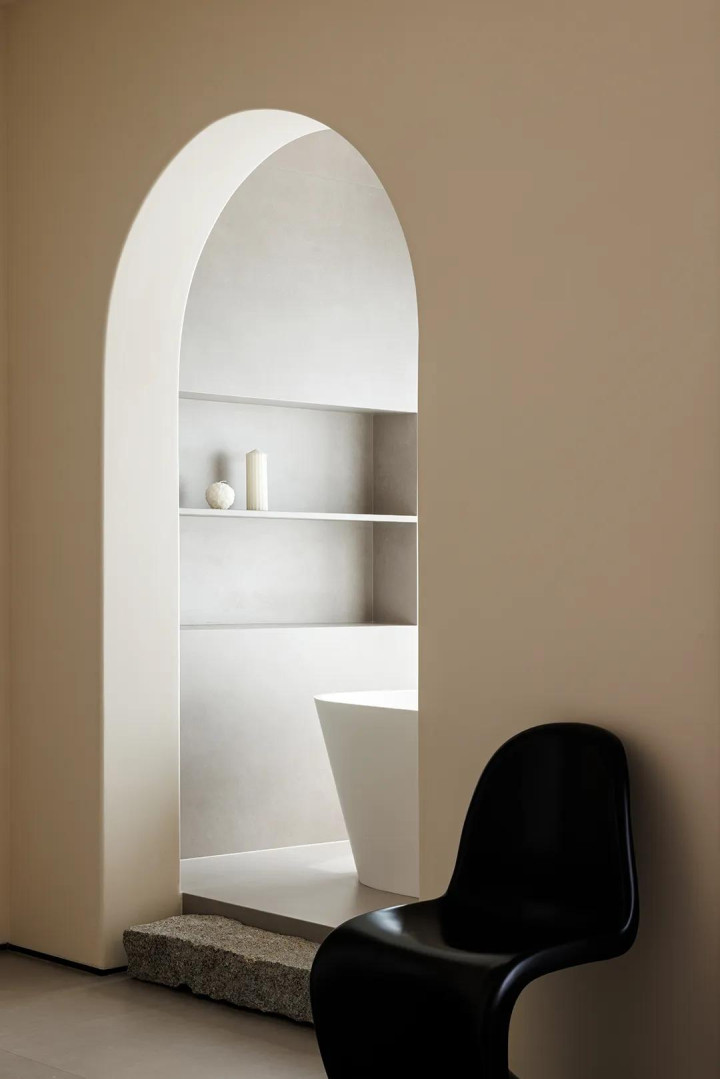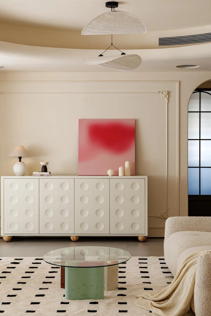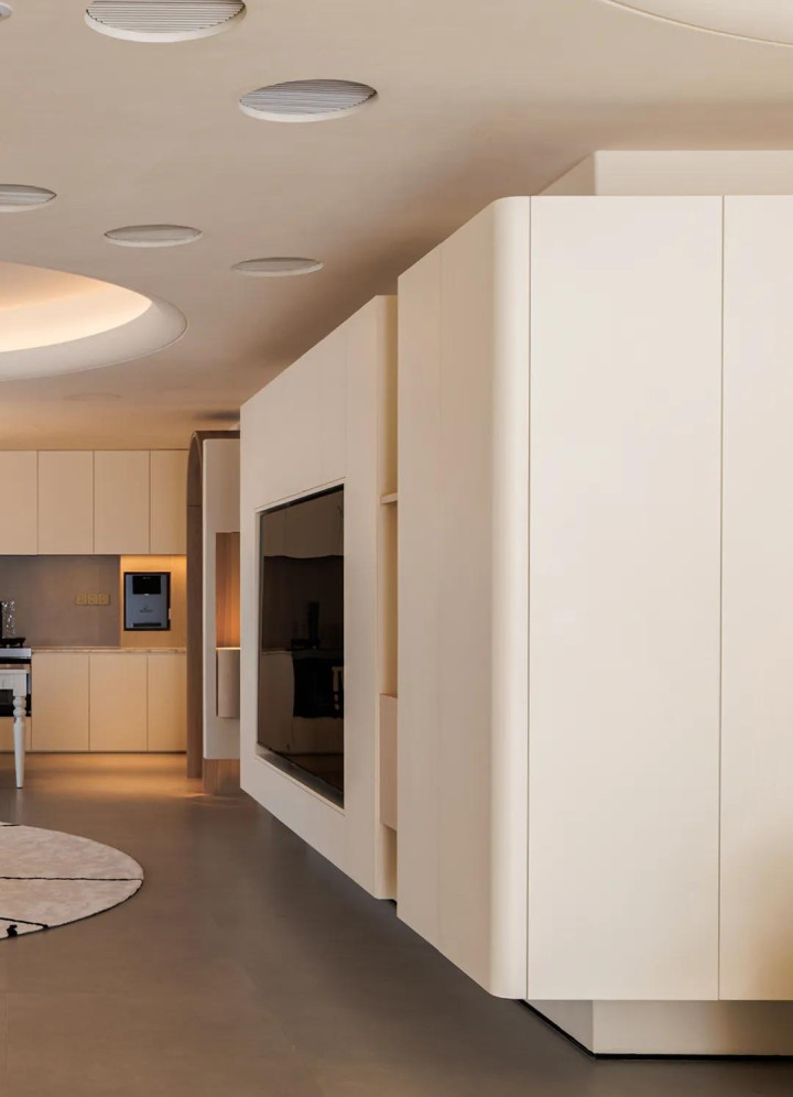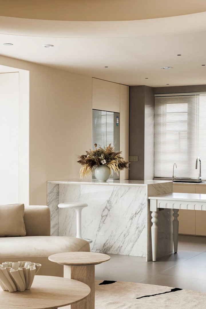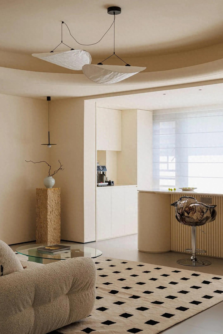 空间摒弃锐利的直角,让温润的弧线从墙角漫延至天花,如同缓缓展开的羊皮卷轴,记录着关于柔软生活的诗意宣言。